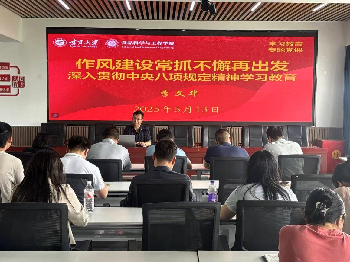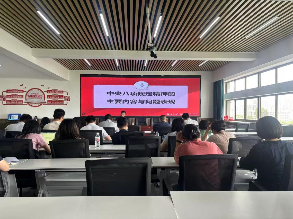 为扎实推进深入贯彻中央八项规定精神学习教育,认真落实习近平总书记关于加强党的作风建设的重要论述,公司党总支于5月21日下午在明远楼512会议室组织开展学习教育专题党课讲座。讲座以“作风建设常抓不懈再出发——深入贯彻中央八项规定精神”为主题,由公司党总支书记李文华主讲,全体党员教师参加学习。