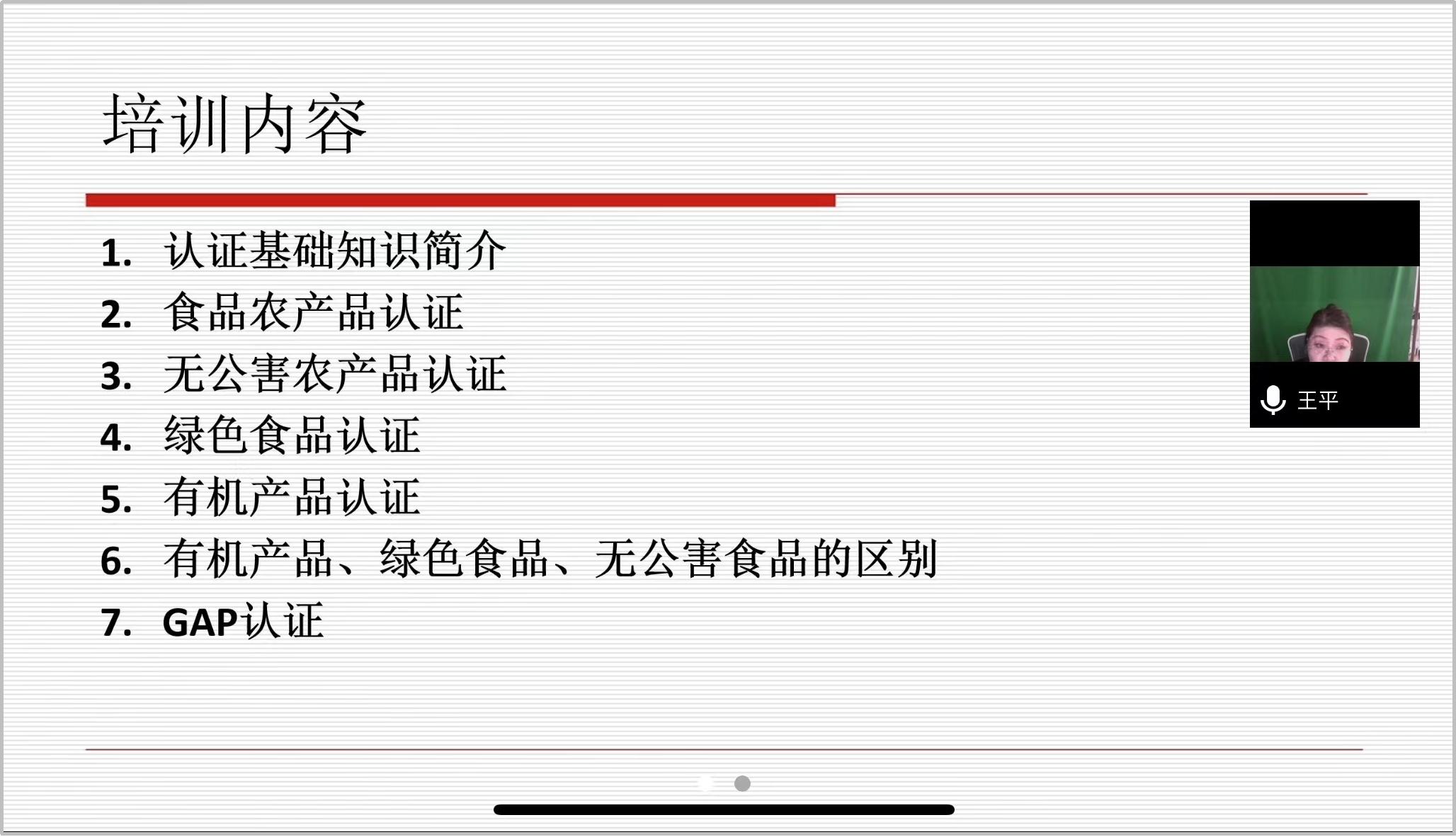食品和农产品认证体系是《食品安全学》课程的重要内容,但由于缺乏认证和质量管理的“实战”经验,该部分内容同时也是培养过程的薄弱环节。为了针对性解决该问题并切实提升人才培养质量,4月20日食品科学与工程系特邀请国衡华信(北京)认证有限公司副总经理兼总工程师王平为同学们开展了一堂有关食品和农产品认证的线上培训。