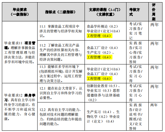 马克思主义基本原理、大学英语、高等数学、食品微生物学、食品工程原理、生物化学、食品化学、食品分析、食品技术原理、食品机械与设备、毕业生产实习、毕业设计(论文)。