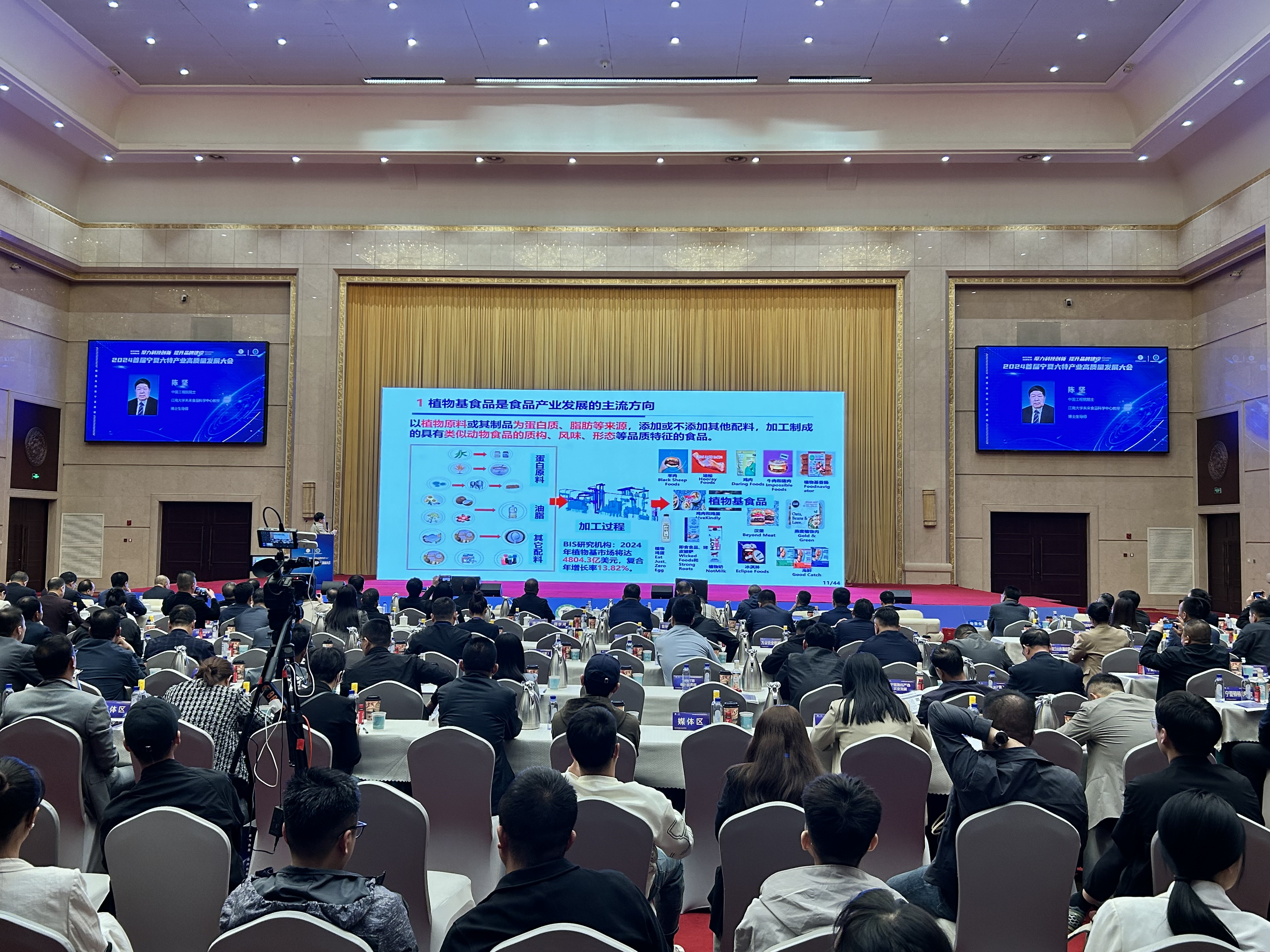 宁夏农业农村厅党组书记、厅长王建为大会致辞并对宁夏优质特色农产品进行了推介。中国工程院院士陈坚、中国食品工业协会秘书长沈志勇等,分别围绕《未来食品:任务与挑战》、《透视现状、未来可期 宏观经济环境下的中国食品产业》作主题演讲。开云经理刘源教授和二级教授罗瑞明老师应邀参会。刘源教授就《新质生产力下的宁夏食品产业思考与探讨》做主题报告,从多个角度对宁夏地区未来食品产业发展趋势做预设,同时对开云的团队力量和研究现状做陈述。罗瑞明教授就《关于宁夏预制菜产业健康发展技术支持体系构建的思考》做主题报告,对宁夏地区预制菜发展做规划建议。