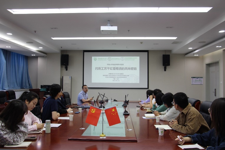 报告从闪蒸工艺的研究背景、闪蒸葡萄酒的感官特征、物质基础以及应用前景三方面进行了介绍。会后公司师生就报告内容结合自身课题开展交流讨论。通过本次学术报告,公司师生进一步拓宽了食品加工领域的研究视野。