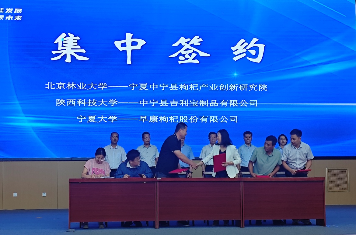 在随后的集中签约仪式上,公司与早康枸杞股份有限公司正式签署“逆流切向模式超声强化枸杞制浆提质增效关键技术与应用”合作转化协议。此举标志着公司该项科研成果成功落地中宁产业一线,将通过技术推广应用为当地枸杞制浆环节升级提供关键支撑,进一步推动中宁枸杞产业从传统加工向高效高质方向转型。