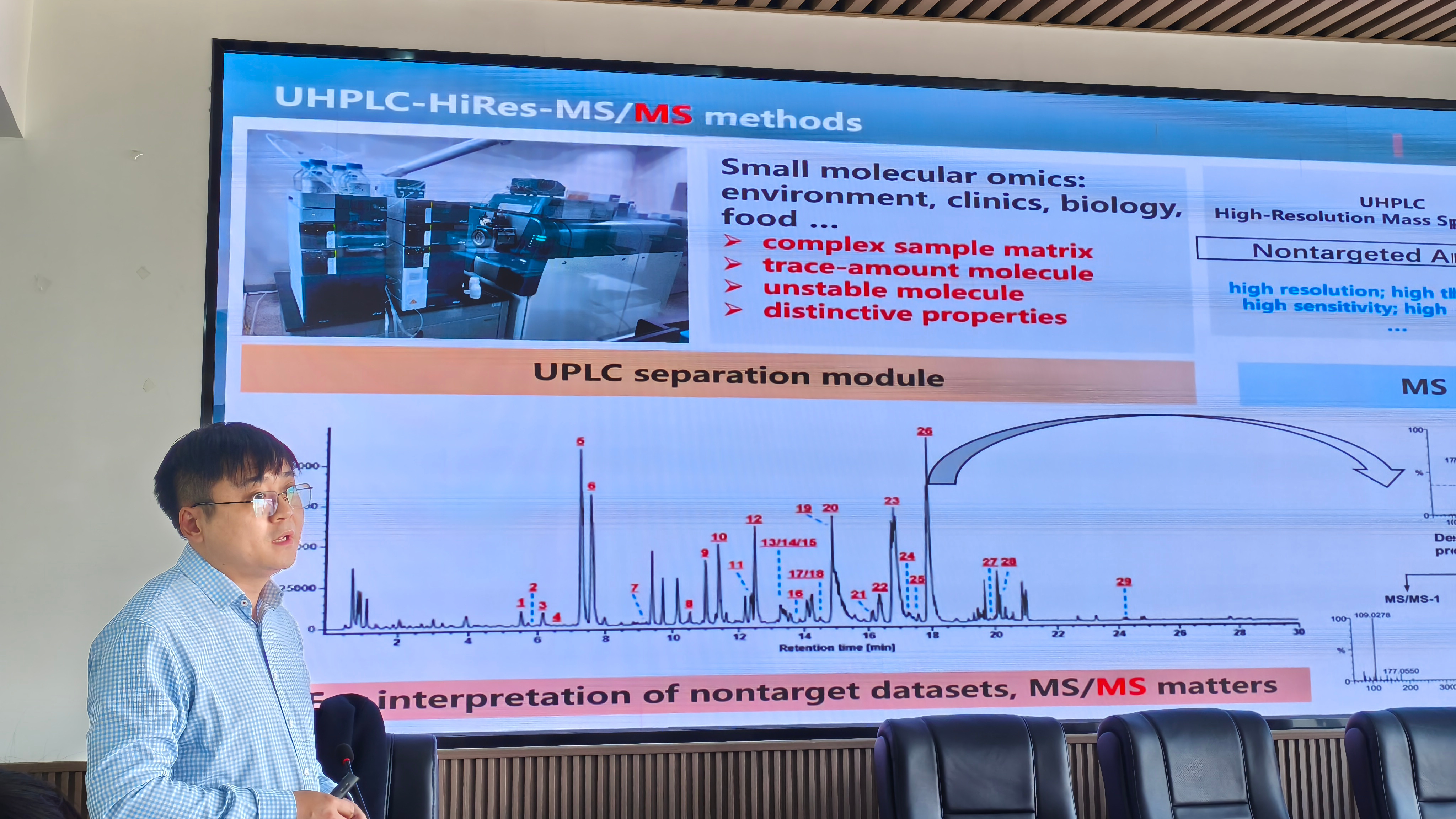 王老师详细介绍了非靶向液质联用分析技术的最新进展,以及如何通过标准化方法采集可共享的组学数据,分享了非靶向代谢组学、色谱分离材料、质谱定量分析方法等方面的研究成果,为师生们提供了宝贵的学术指导和研究思路。参会老师和员工们与王老师进行了热烈的讨论和交流。
