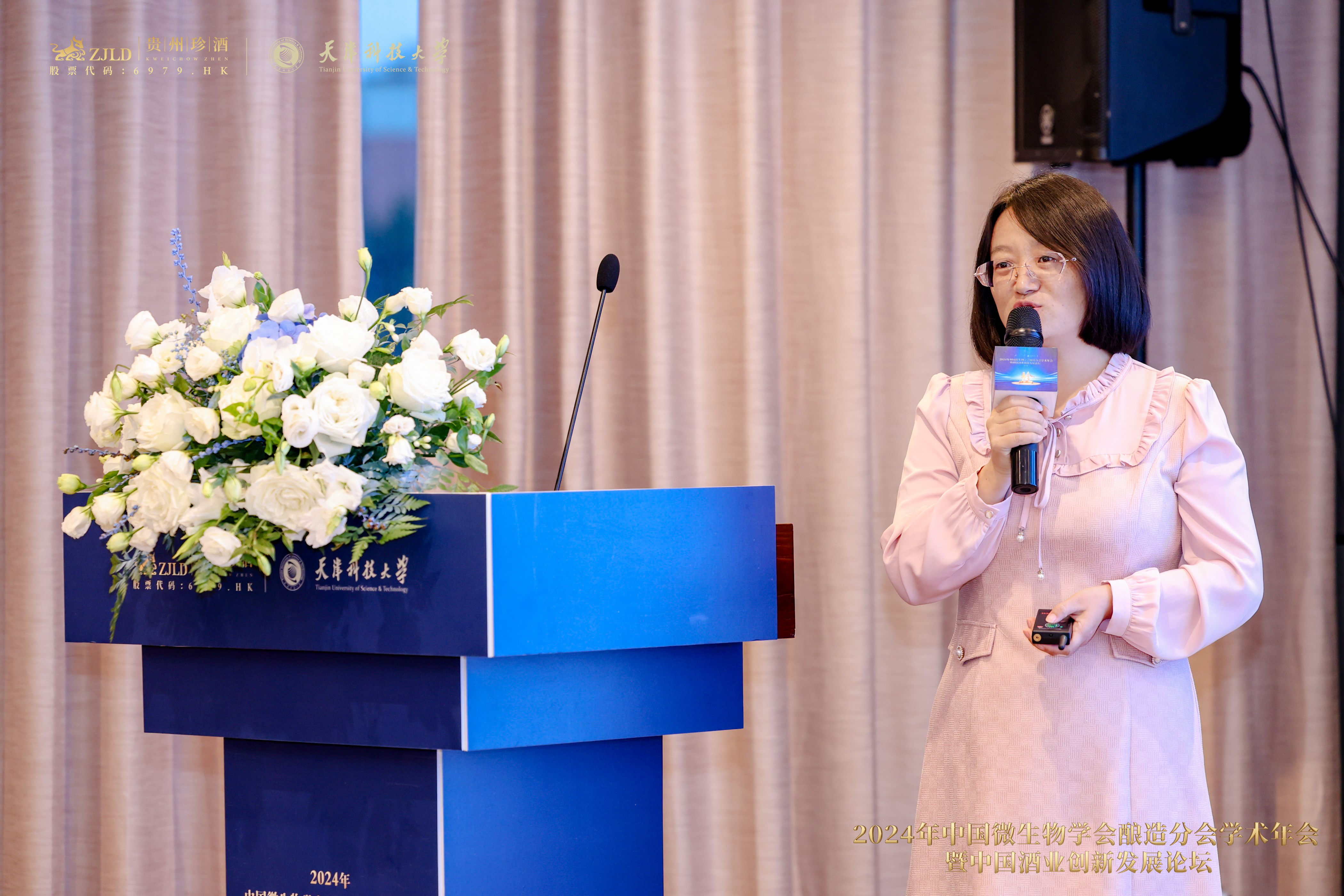公司传统发酵食品先进制造团队田晓菊副教授参加了本次会议,并在“酿造食品风味与健康”分会场做了报告,题目为《宁夏枸杞品种和酿造微生物对枸杞酒风味形成的影响研究》,首先介绍了宁夏枸杞产业发展现状与枸杞酒行业存在的技术瓶颈,重点阐明了枸杞原料与酿造微生物对枸杞酒风味形成的影响及解决对策,为宁夏枸杞产业发展提出了新的思路与发展方向;通过此次学术交流,使宁夏特色产业枸杞产业以及枸杞酒的酿造受到科研同仁与产业同行的关注,有助于推动宁夏枸杞产业高质量快速发展。