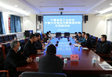 为深度推进校企产学研合作,发挥高校服务自治区“六特”产业高质量发展人才技术及产教融合育人优势,落实推进本科生、研究生拓岗就业工作,2023年3月15日,食品与葡萄酒公司邀请宁夏食品工业协会秘书长徐宏杰、协会顾问杨树虎、夏进乳业集团股份有限公司总经理黄学、盐池县鑫海食品有限公司董事长陈海、昊王米业集团总经理王建华、志辉源石葡萄酒庄有限公司总经理袁园、爱芙帝科技有限公司总经理卜兴华一行来公司交流座谈。公司党委书记张宁、副经理张军翔、方海田、王松磊及教师代表刘敦华、剧柠、范艳丽、章中、魏超昆、金刚、曹松敏与各位企业家进行了沟通讨论。