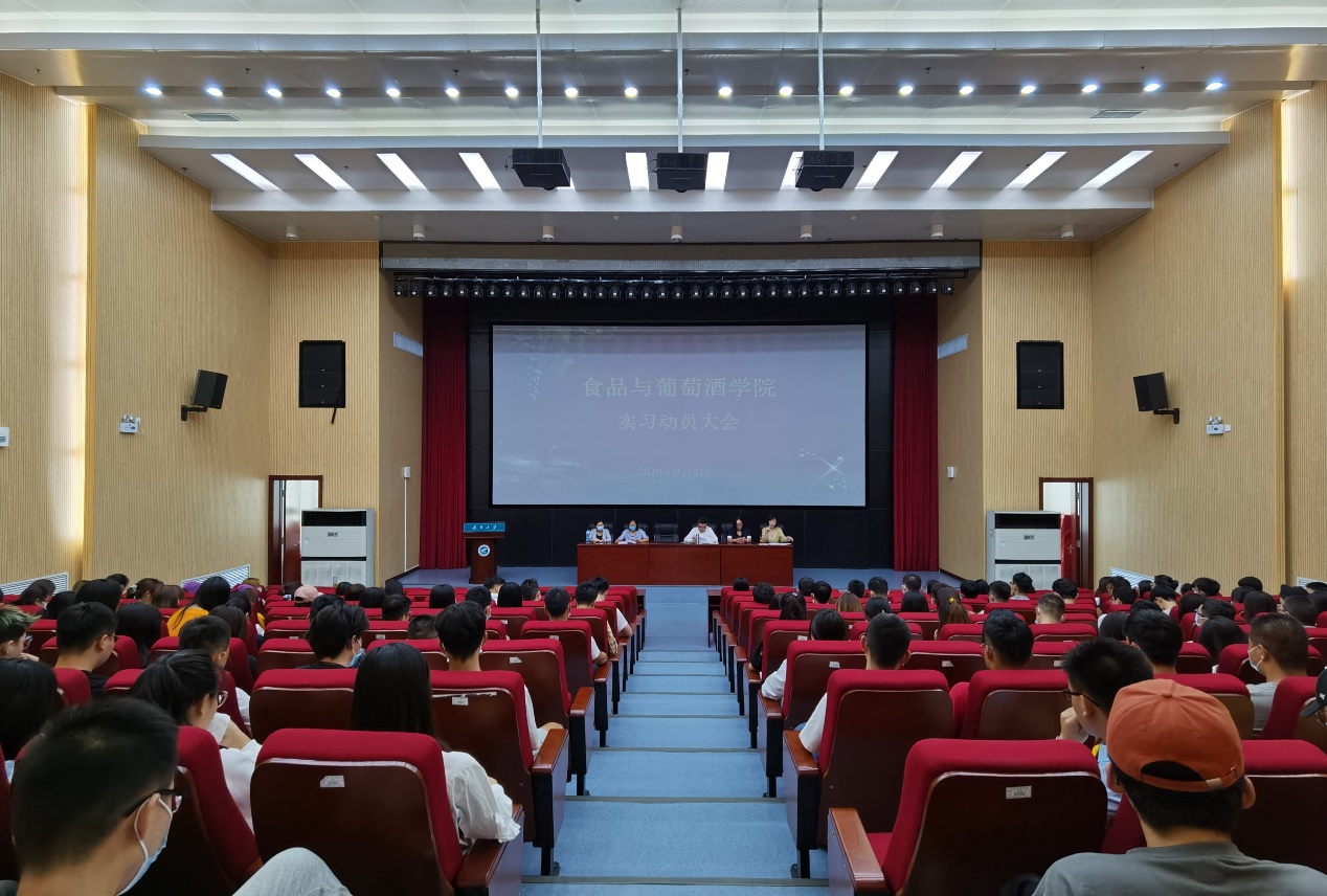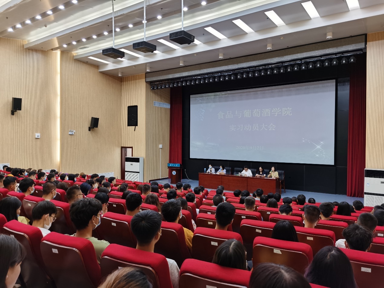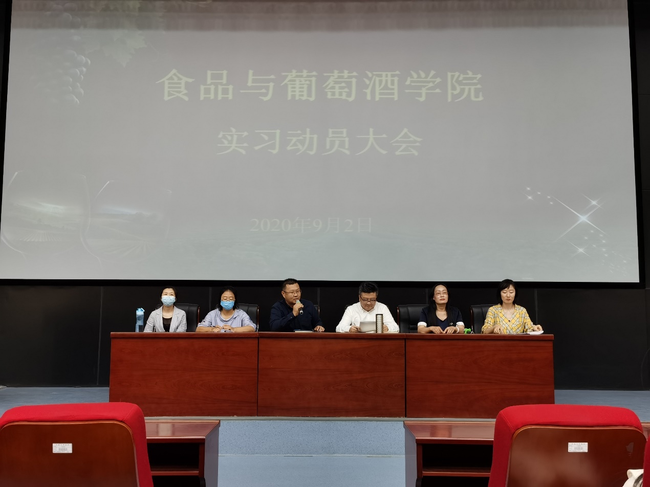 按照人才培养方案要求和教学计划安排,2020年9月2日下午15:30,公司在科技楼一楼多功能报告厅组织开展实习动员大会,公司党总支副书记马浩谦老师、副经理方海田老师、葡萄与葡萄酒工程教研室主任孙悦老师、葡萄酒营销教研室主任李茹一老师、葡萄酒文化旅游教研室主任毛凤玲老师、教学科研办公室薛婷婷老师以及2017、2018级全体同学参加了动员会。