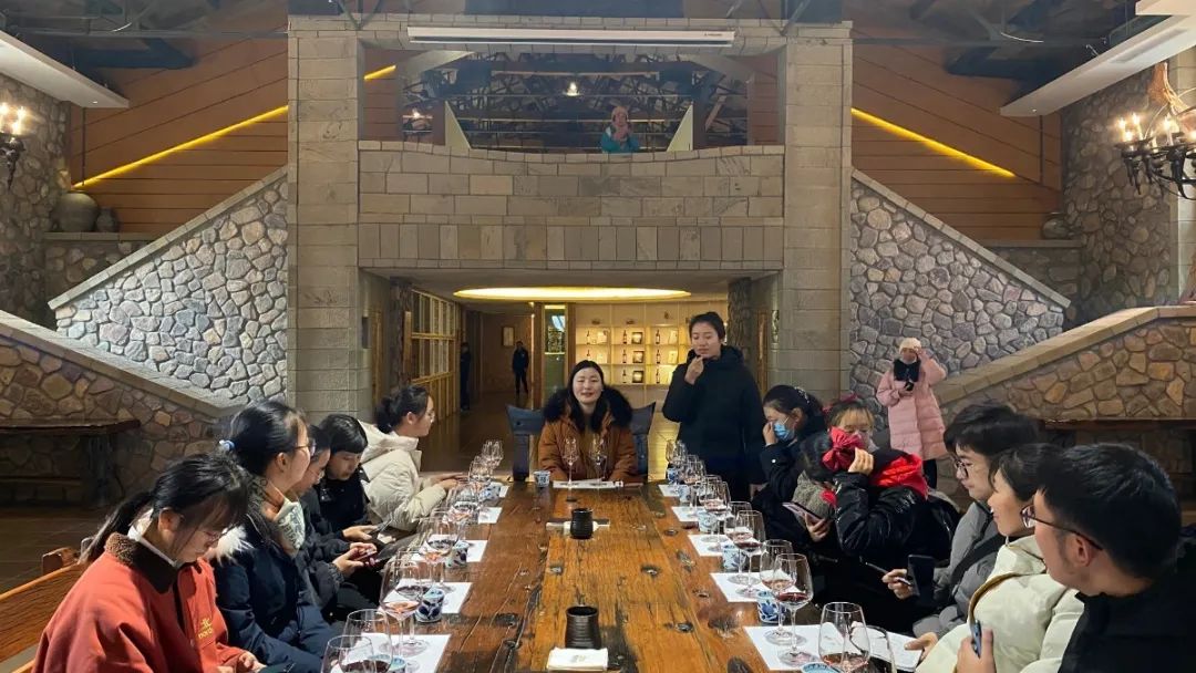 酒庄为每位同学提供了18年的“山之语”和桃红葡萄酒,讲解了举杯手势以及对其色泽度的观察。
