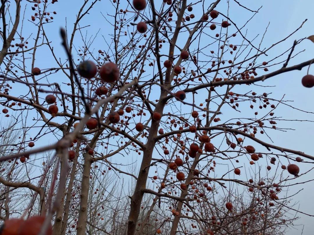参观完酒窖,同学们来到了葡萄园,时值冬季,葡萄藤已被埋入地下,路两旁的海棠果为同学们的酒庄之行画上了圆满的句号。