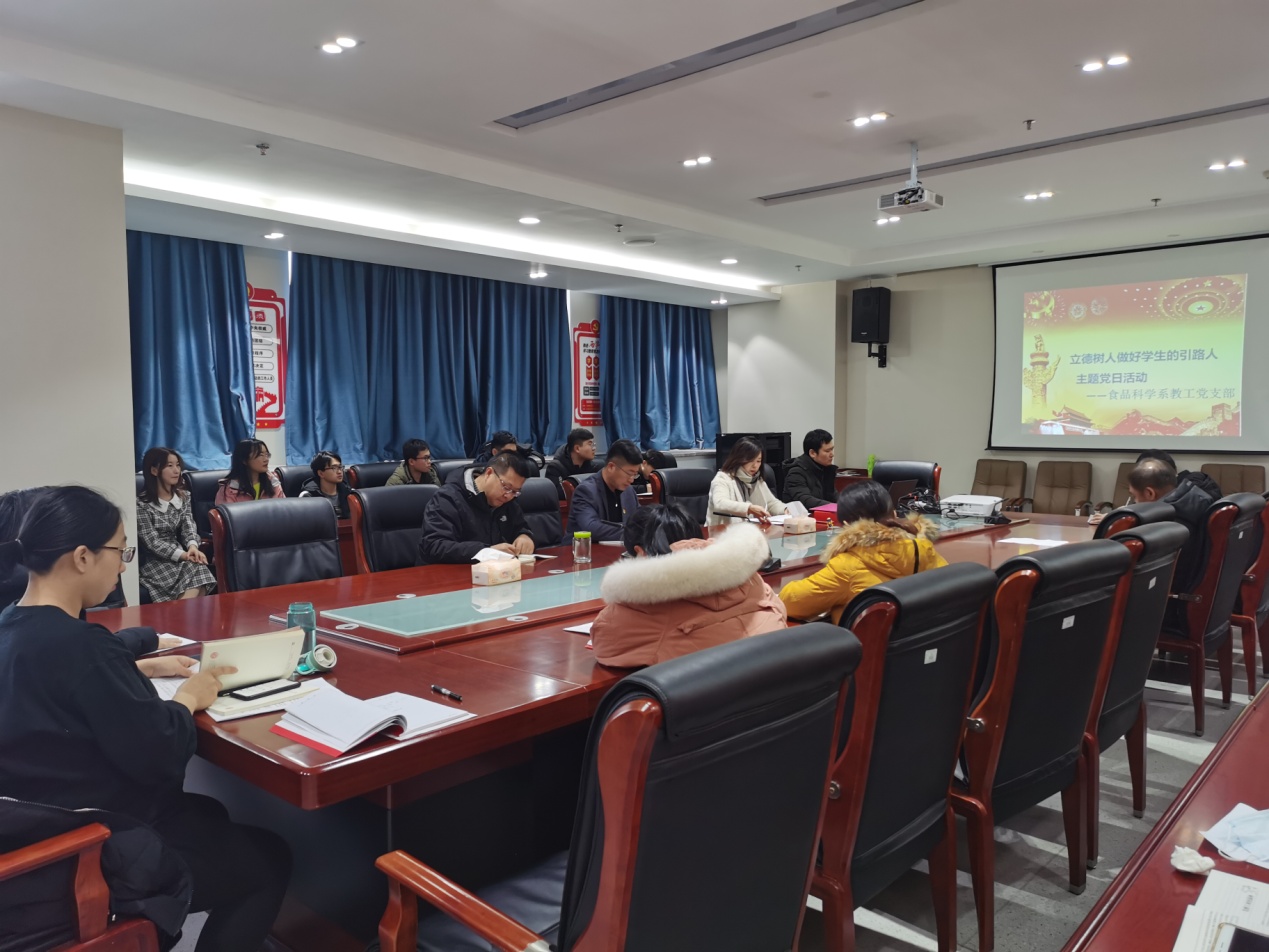 2020年12月9日下午2时,食品科学系教工党支部在开云全站科技楼A410会议室开展了教师党员与员工党员联合“立德树人做好员工的引路人”主题党日活动,会议由食品科学系教工党支部书记张惠玲主持,食品与葡萄酒公司党委书记张宁、副经理方海田出席,食品科学系教师党员以及食品科学系研究生党员代表8人、本科生党员代表5人参加。