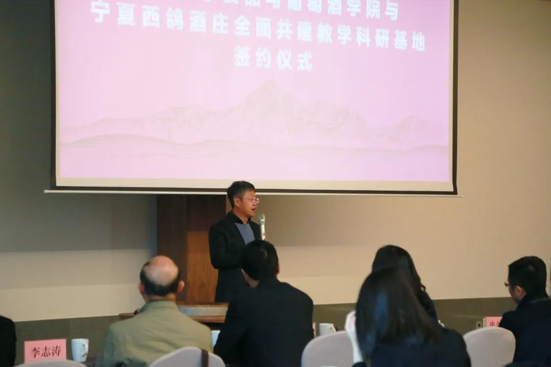 西鸽酒庄庄主张言志也分别介绍了企业规模、就业环境以及对发展前景提出了建议。张言志表示,优秀的人才和科技是西鸽现在所需要的,希望可以加强企业与院校之间的交流,建立畅通的交流通道,为合作打下良好的基础,真正为贺兰山东麓产区葡萄酒产业的发展做一些实事。