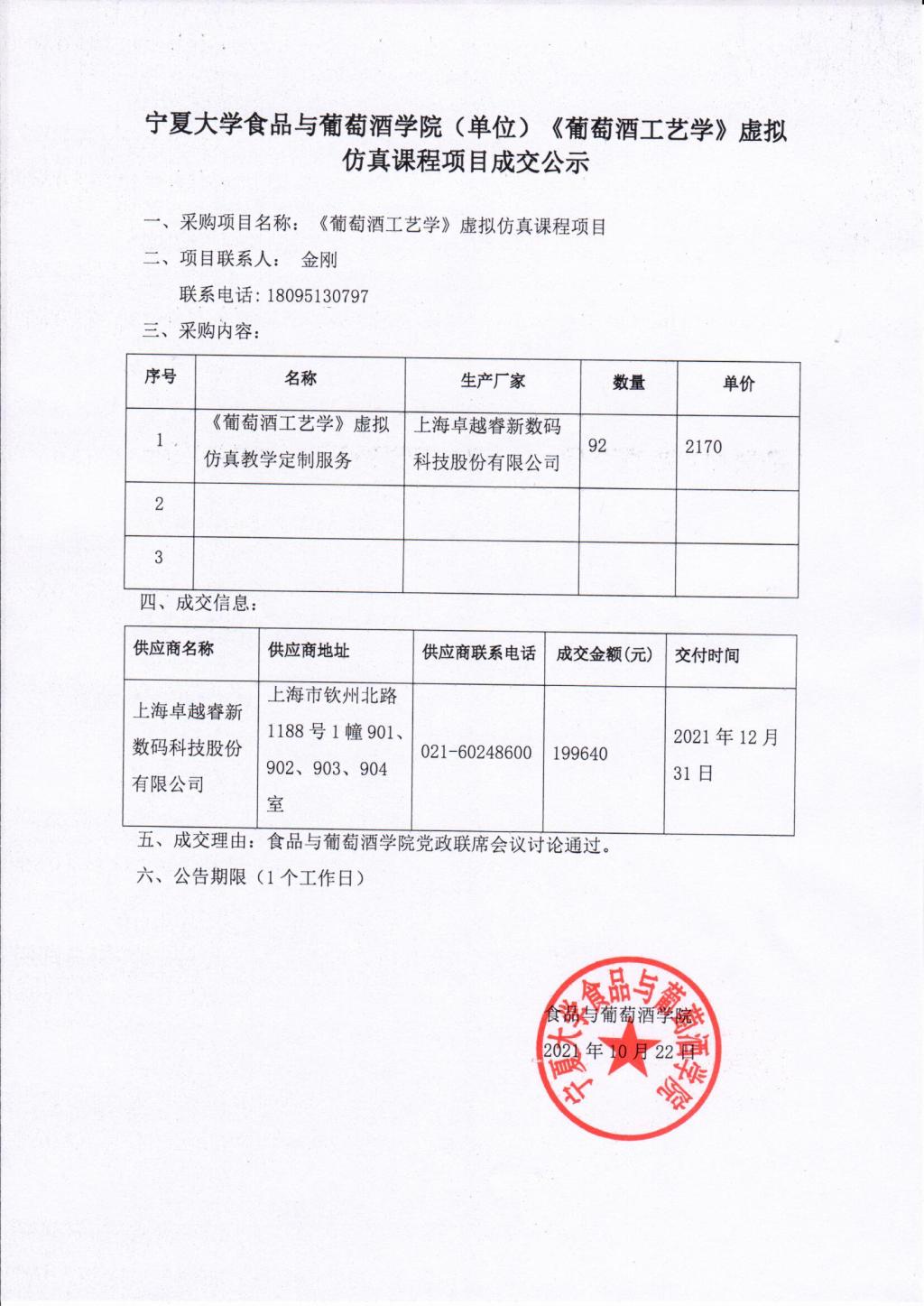 开云全站食品与葡萄酒公司(单位)《葡萄酒工艺学》虚拟仿真课程项目成交公示