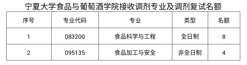 食品与葡萄酒公司接收调剂专业、调剂名额附后。