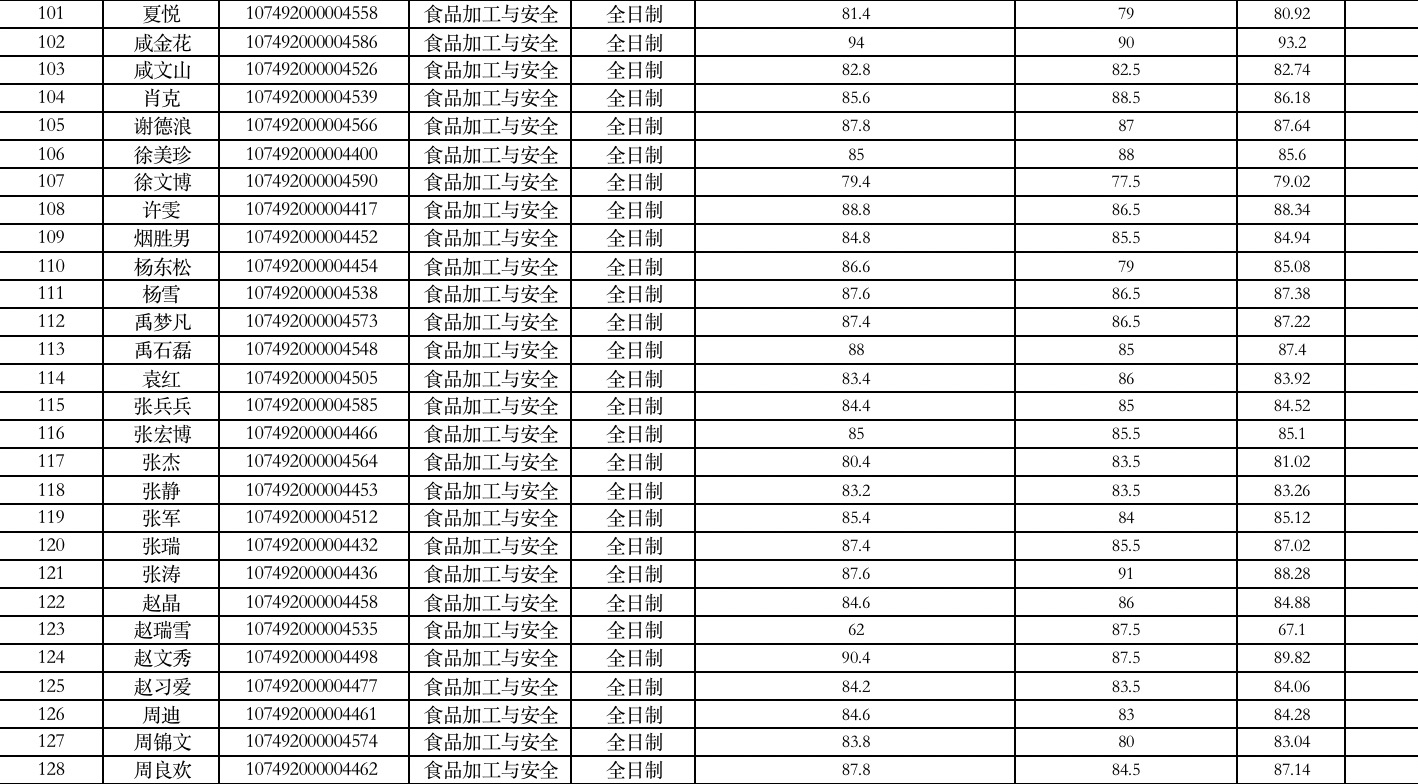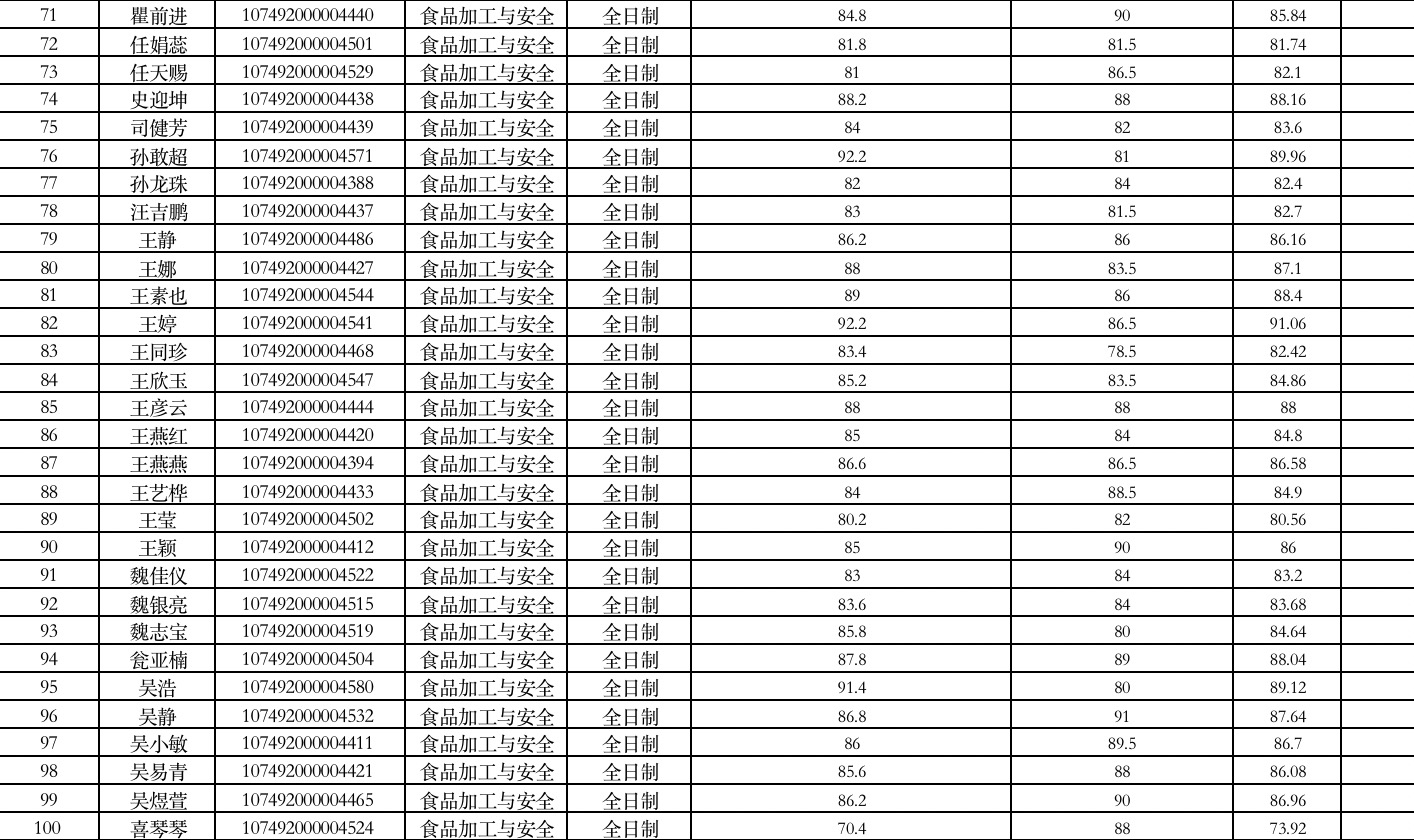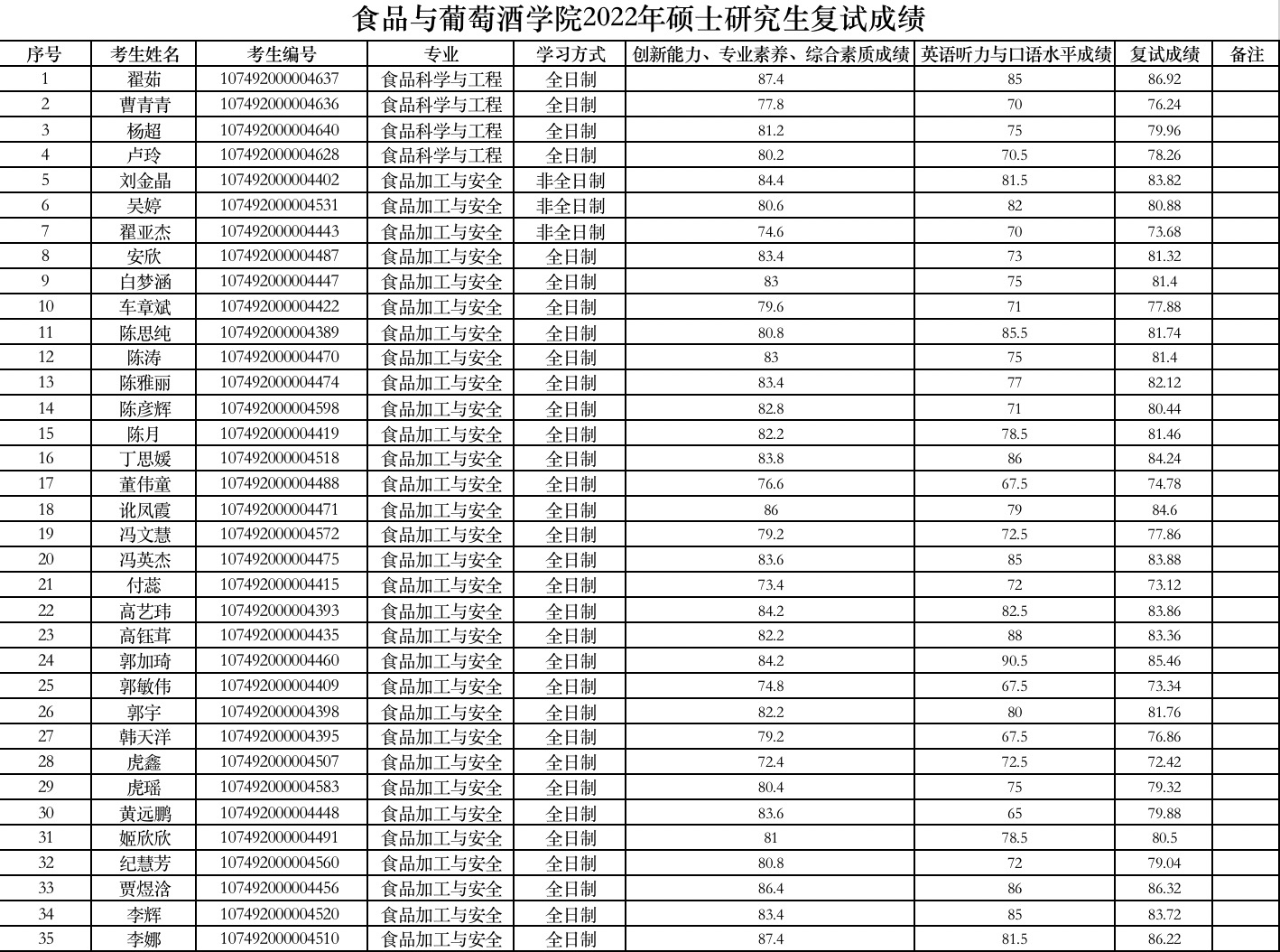 食品与葡萄酒公司2022年硕士研究生复试成绩