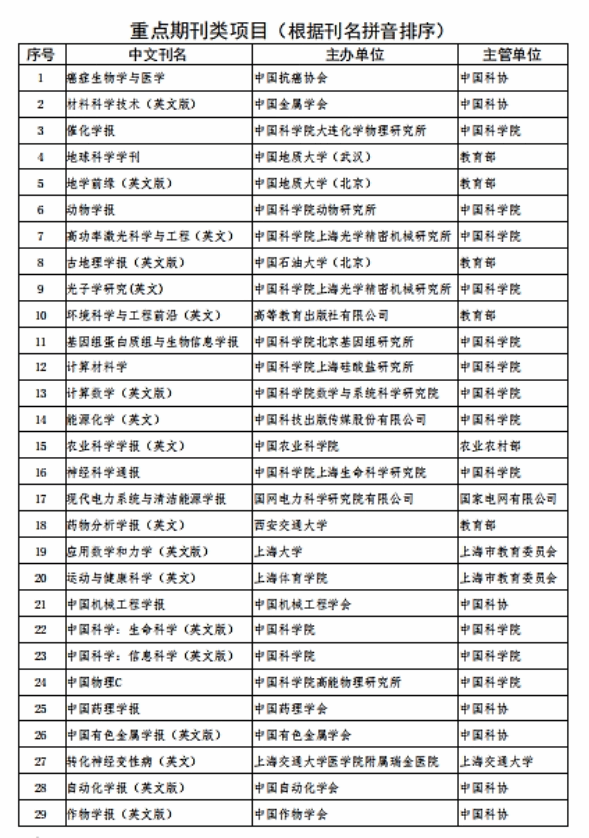 附件一:2020年中国科技期刊卓越行动计划入选期刊目录