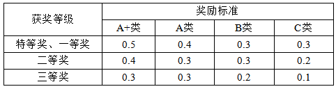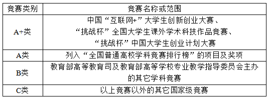 经特殊学术专长专家审核工作小组考核通过的科研竞赛奖励,依照2021年3月22日中国高等教育学会高校竞赛评估与管理体系研究工作组发布的全国普通高校老员工竞赛排行榜(详见附件二),根据学科竞赛的组织机构、社会影响和获奖难度等方面综合考虑,将省级以上学科竞赛的类别分为A+、A、B、C四类。竞赛评级按特殊学术专长专家审核工作小组认定为准。竞赛分类标准如下: