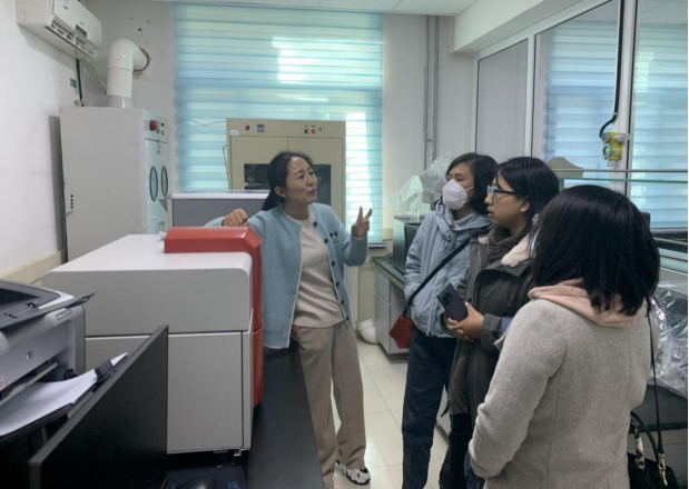 在李彩虹副研究员的带领下,团队参观了农产品质量标准与检测技术研究所的实验室和科研平台,了解了超高效液相色谱-质谱仪、原子荧光光谱仪、同位素仪、电感耦合等离子体质谱仪、核磁共振波谱仪等各种大型仪器设备。